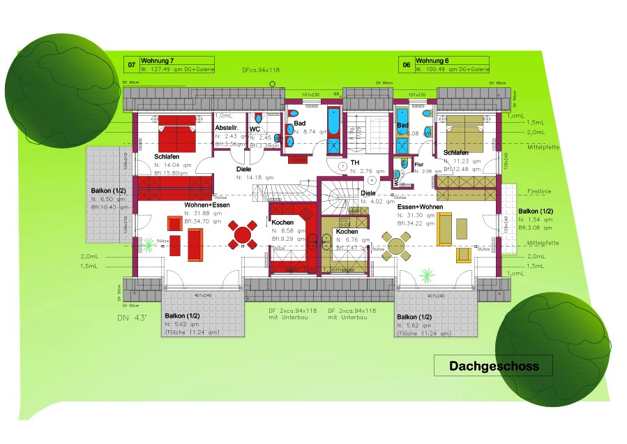 In zentraler Lage im Ortskern von Allensbach, unterhalb des Höhrenbergs, entstand eine familienfreundliche Wohnanlage mit einem Mehrfamilien Wohnhaus und 2 Doppelhäusern. Im Rückwärtigen Bereich des Grundstücks entstand ein Wohnhaus mit sechs unterschiedlich großen Wohnungen. Im Kellergeschoss ist eine zentrale Tiefgarage mit großzügig erreichbaren Stellplätzen und Sonderflächen für Fahrräder, Kinderwagen und dergleichen. Die Wohnungen sind sinnvoll und Kundenorientiert organisiert. Lichtdurchflutete Räume durch großzügige Fensterflächen.